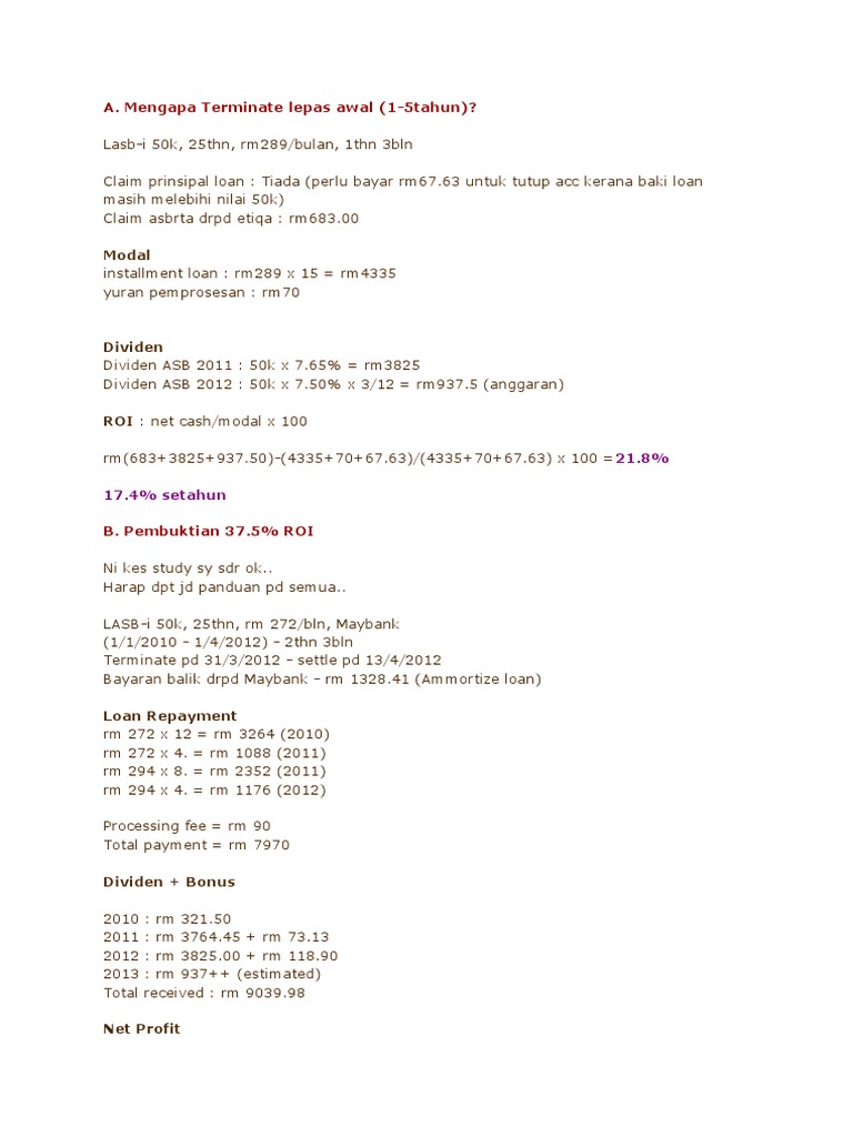 Saya ada bertanya dgn pihak officer bank untuk terminate, dia cakap rugi terminate skrg sbb blr skrg dah tinggi lagipun pulangan yg dapat pun sikit saja. Bukan untung pada dividen sahaja tetapi untung juga pada principal jika kita terminate. Dalam artikel kali ini, saya akan menunjukkan pengiraan ringkas berkenaan 3 teknik loan asb yang paling popular dan mudah untuk dilakukan iaitu teknik penggubahan, teknik. T corporate card in the market designed to make your business spending extra meaningful with its charity element. Cara terminate asb loan rhb 2021.